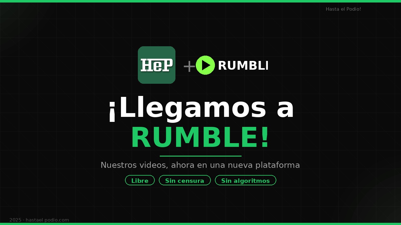 Desde este año, Hasta el Podio realizará sus emisiones en una nueva plataforma. Más libre, menos censura y sin algoritmos: solo nuestro deporte favorito!